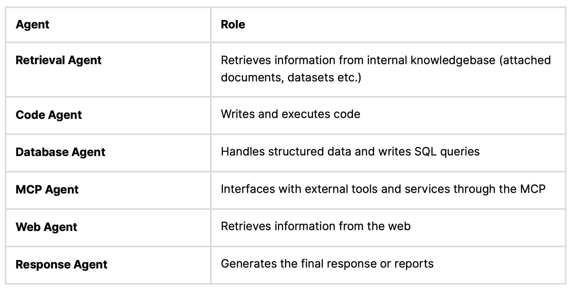 These specialized agents include: