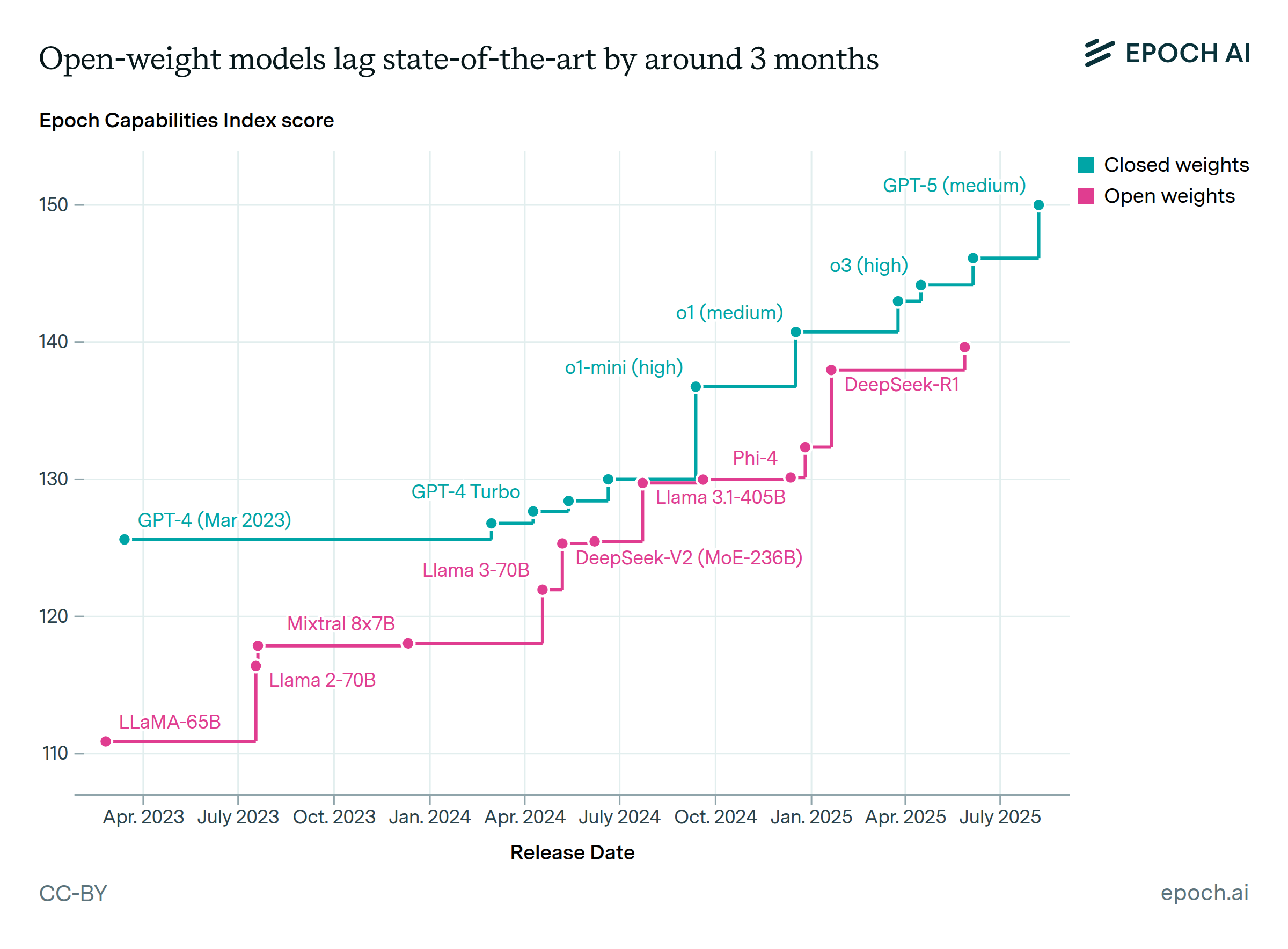 The competitive landscape between open-source and proprietary AI models is shifting in a meaningful way. Through 2025, open-weight models such as Llama 4, Mistral Large, Qwen 2.5 and DeepSeek-V2 made rapid progress, narrowing the gap in reasoning, multimodality and efficiency, and in some domains, outperforming closed systems outright. These advances do not diminish the value of proprietary research, but they do change the balance of power. As high-performing models become widely accessible, technical capability becomes less of a differentiator, and the playing field moves closer to level.