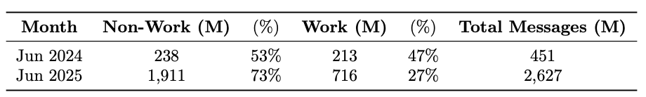• OpenAI shows that writing and information seeking dominate non-work use. It’s a safe bet that a large share comes from students.